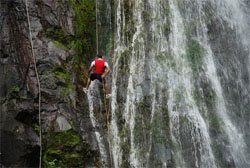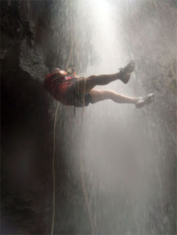 Descenso sobre catarata de 40 mts, finaliza en una alberca natural por lo que se hace necesario el chaleco flotador (proporcionado por RT). Rush sobre cascada no apto para cardíacos!!
